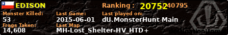 | Server | Map | LastGame | Score | Teamscore | Monsterleft | Deaths | Suicides | TKs | Distance | Playtime | |