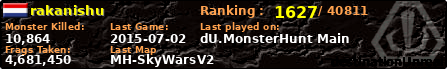 rakanishu | | PlayerID: | 20942 | | Overall MHT: | 4,681,450 | | Overall Deaths: | 1327 | | Overall Suicides: | 12 | | Overall TeamKills: | 9 | | Overall Distance traveled: | 1,068km | | Overall Time Spend on Server: | 04days 15h 29m 50s | | Maps Played: | 272 | | Firstgame: | 2015-06-05 16:12:58 | | LastGame: | 2015-07-02 00:39:39 | | Player Ranking Place: | 1627 | | Used Playernames: | rakanishu eavesdropper treeheadwoodfist Calenzo mrWimpy single WindDrool bringer loveslave slave doom_mood __@_´/ Gameking bucketspiders [.]-[.]/ toorc-icefist gelebflamefinger obedienceslave player18+ dirtygames fleshactor maffer-dragonhand straferun curvygirl Brainy´oBrian skinnydipper