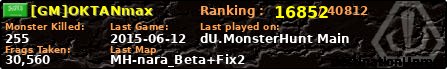 | Server | Map | LastGame | Score | Teamscore | Monsterleft | Deaths | Suicides | TKs | Distance | Playtime | |