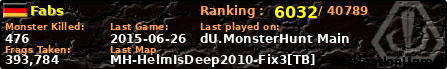 Fabs | | PlayerID: | 21153 | | Overall MHT: | 393,784 | | Overall Deaths: | 95 | | Overall Suicides: | 0 | | Overall TeamKills: | 2 | | Overall Distance traveled: | 72km | | Overall Time Spend on Server: | 00days 08h 42m 22s | | Maps Played: | 23 | | Firstgame: | 2015-06-23 00:11:13 | | LastGame: | 2015-06-26 01:01:18 | | Player Ranking Place: | 6032 | | Used Playernames: | Fabs -Er- Fab-the-old-HornD