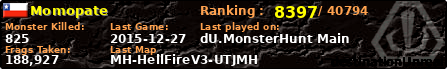 | Server | Map | LastGame | Score | Teamscore | Monsterleft | Deaths | Suicides | TKs | Distance | Playtime | |