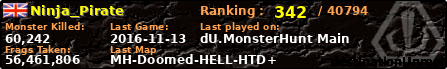 Ninja_Pirate | | PlayerID: | 21605 | | Overall MHT: | 56,461,806 | | Overall Deaths: | 4312 | | Overall Suicides: | 1770 | | Overall TeamKills: | 124 | | Overall Distance traveled: | 4,862km | | Overall Time Spend on Server: | 21days 21h 28m 58s | | Maps Played: | 2002 | | Firstgame: | 2015-08-13 00:38:49 | | LastGame: | 2016-11-13 01:02:52 | | Player Ranking Place: | 342 | | Used Playernames: | Ninja_Pirate Ninja_Boorat Mr.RedBox Ninja<3Hyp Sprat