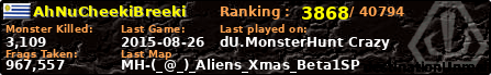 | Server | Map | LastGame | Score | Teamscore | Monsterleft | Deaths | Suicides | TKs | Distance | Playtime | |