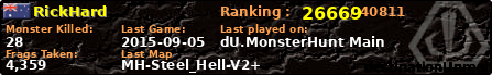 | Server | Map | LastGame | Score | Teamscore | Monsterleft | Deaths | Suicides | TKs | Distance | Playtime | |
