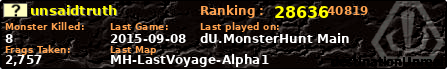 | Server | Map | LastGame | Score | Teamscore | Monsterleft | Deaths | Suicides | TKs | Distance | Playtime | |
