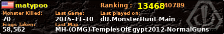 | Server | Map | LastGame | Score | Teamscore | Monsterleft | Deaths | Suicides | TKs | Distance | Playtime | |
