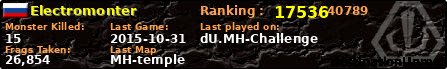 | Server | Map | LastGame | Score | Teamscore | Monsterleft | Deaths | Suicides | TKs | Distance | Playtime | |