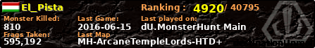 | Server | Map | LastGame | Score | Teamscore | Monsterleft | Deaths | Suicides | TKs | Distance | Playtime | |