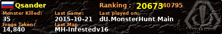 | Server | Map | LastGame | Score | Teamscore | Monsterleft | Deaths | Suicides | TKs | Distance | Playtime | |