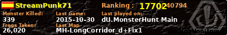 | Server | Map | LastGame | Score | Teamscore | Monsterleft | Deaths | Suicides | TKs | Distance | Playtime | |