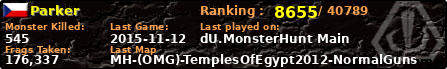 Parker | | PlayerID: | 22518 | | Overall MHT: | 176,337 | | Overall Deaths: | 106 | | Overall Suicides: | 0 | | Overall TeamKills: | 1 | | Overall Distance traveled: | 78km | | Overall Time Spend on Server: | 00days 04h 44m 59s | | Maps Played: | 21 | | Firstgame: | 2015-11-05 12:32:24 | | LastGame: | 2015-11-12 20:10:07 | | Player Ranking Place: | 8655 | | Used Playernames: | Parker Nuwii Koukou Nubii Kullich