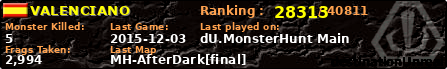 | Server | Map | LastGame | Score | Teamscore | Monsterleft | Deaths | Suicides | TKs | Distance | Playtime | |