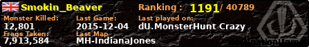 Smokin_Beaver | | PlayerID: | 22780 | | Overall MHT: | 7,913,584 | | Overall Deaths: | 116 | | Overall Suicides: | 1 | | Overall TeamKills: | 0 | | Overall Distance traveled: | 183km | | Overall Time Spend on Server: | 00days 14h 58m 24s | | Maps Played: | 46 | | Firstgame: | 2015-11-25 20:18:17 | | LastGame: | 2015-12-04 18:04:09 | | Player Ranking Place: | 1191 | | Used Playernames: | Smokin_Beaver