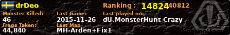 | Server | Map | LastGame | Score | Teamscore | Monsterleft | Deaths | Suicides | TKs | Distance | Playtime | |