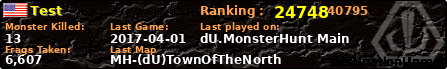 | Server | Map | LastGame | Score | Teamscore | Monsterleft | Deaths | Suicides | TKs | Distance | Playtime | |