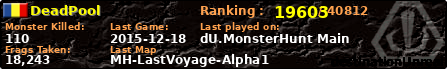 | Server | Map | LastGame | Score | Teamscore | Monsterleft | Deaths | Suicides | TKs | Distance | Playtime | |