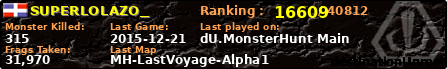 | Server | Map | LastGame | Score | Teamscore | Monsterleft | Deaths | Suicides | TKs | Distance | Playtime | |
