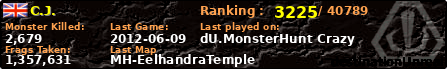 C.J. | | PlayerID: | 2323 | | Overall MHT: | 1,357,631 | | Overall Deaths: | 167 | | Overall Suicides: | 10 | | Overall TeamKills: | 0 | | Overall Distance traveled: | 119km | | Overall Time Spend on Server: | 00days 09h 30m 44s | | Maps Played: | 45 | | Firstgame: | 2010-12-10 10:47:33 | | LastGame: | 2012-06-09 13:39:38 | | Player Ranking Place: | 3225 | | Used Playernames: | C.J. Bolous Soul <[MHA]>Bolous <[BTG]>Bolous -=[CFR]=-Bolous ThisIsIt Bolony Droopin RJ_Roopin Wing Eiffel