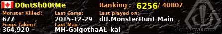 | Server | Map | LastGame | Score | Teamscore | Monsterleft | Deaths | Suicides | TKs | Distance | Playtime | |