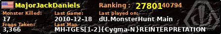 | Server | Map | LastGame | Score | Teamscore | Monsterleft | Deaths | Suicides | TKs | Distance | Playtime | |