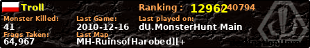 | Server | Map | LastGame | Score | Teamscore | Monsterleft | Deaths | Suicides | TKs | Distance | Playtime | |