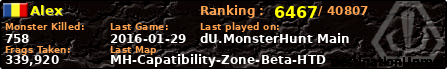 Alex | | PlayerID: | 23767 | | Overall MHT: | 339,920 | | Overall Deaths: | 116 | | Overall Suicides: | 0 | | Overall TeamKills: | 0 | | Overall Distance traveled: | 121km | | Overall Time Spend on Server: | 00days 09h 00m 19s | | Maps Played: | 37 | | Firstgame: | 2016-01-27 20:48:41 | | LastGame: | 2016-01-29 23:17:22 | | Player Ranking Place: | 6467 | | Used Playernames: | Alex