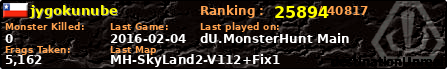 | Server | Map | LastGame | Score | Teamscore | Monsterleft | Deaths | Suicides | TKs | Distance | Playtime | |