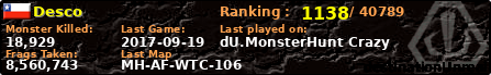 Desco | | PlayerID: | 23869 | | Overall MHT: | 8,560,743 | | Overall Deaths: | 862 | | Overall Suicides: | 16 | | Overall TeamKills: | 0 | | Overall Distance traveled: | 770km | | Overall Time Spend on Server: | 02days 11h 57m 07s | | Maps Played: | 207 | | Firstgame: | 2016-02-05 00:20:53 | | LastGame: | 2017-09-19 02:50:31 | | Player Ranking Place: | 1138 | | Used Playernames: | Desco _Desco Descoco (_._)_(_._) -=CoN=-Desco