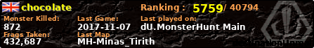 chocolate | | PlayerID: | 24173 | | Overall MHT: | 432,687 | | Overall Deaths: | 161 | | Overall Suicides: | 5 | | Overall TeamKills: | 4 | | Overall Distance traveled: | 137km | | Overall Time Spend on Server: | 00days 15h 25m 59s | | Maps Played: | 64 | | Firstgame: | 2016-02-27 14:55:58 | | LastGame: | 2017-11-07 16:16:58 | | Player Ranking Place: | 5759 | | Used Playernames: | chocolate star_fire Glitz **MAzie** Caxton