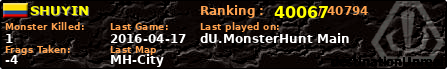 | Server | Map | LastGame | Score | Teamscore | Monsterleft | Deaths | Suicides | TKs | Distance | Playtime | |