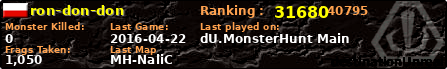| Server | Map | LastGame | Score | Teamscore | Monsterleft | Deaths | Suicides | TKs | Distance | Playtime | |