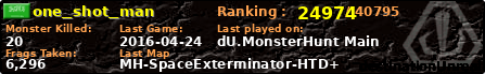 ![]() | MH-SpaceExterminator-HTD+ | 2016-04-24 08:21:31 | 6,296 | 192891 | ![]() | 2 | 0 | 0 | 1,93km | 00:12:43 |