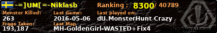 | Server | Map | LastGame | Score | Teamscore | Monsterleft | Deaths | Suicides | TKs | Distance | Playtime | |
