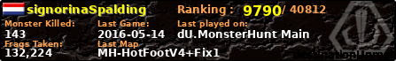 | Server | Map | LastGame | Score | Teamscore | Monsterleft | Deaths | Suicides | TKs | Distance | Playtime | |