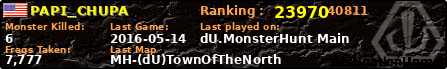 | Server | Map | LastGame | Score | Teamscore | Monsterleft | Deaths | Suicides | TKs | Distance | Playtime | |