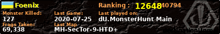 | Server | Map | LastGame | Score | Teamscore | Monsterleft | Deaths | Suicides | TKs | Distance | Playtime | |