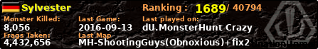 Sylvester | | PlayerID: | 25237 | | Overall MHT: | 4,432,656 | | Overall Deaths: | 158 | | Overall Suicides: | 0 | | Overall TeamKills: | 0 | | Overall Distance traveled: | 225km | | Overall Time Spend on Server: | 00days 18h 05m 13s | | Maps Played: | 56 | | Firstgame: | 2016-05-15 12:10:24 | | LastGame: | 2016-09-13 20:44:14 | | Player Ranking Place: | 1689 | | Used Playernames: | Sylvester