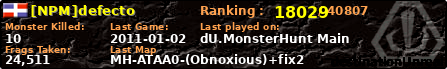 ![]() | MH-ATAA0-(Obnoxious)+fix2 | 2011-01-02 23:53:18 | 13,478 | 568973 | 2 | 1 | 0 | 0 | 1,54km | 00:39:42 |