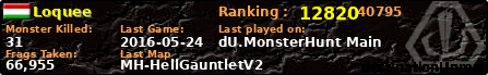 | Server | Map | LastGame | Score | Teamscore | Monsterleft | Deaths | Suicides | TKs | Distance | Playtime | |