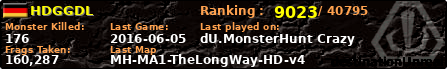 ![]() | MH-GodzReturn++ | 2016-06-05 10:26:26 | 0 | 67688 | 20 | 0 | 0 | 0 | 0,19km | 01:25:14 |