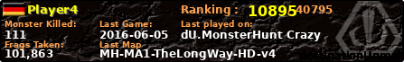 | Server | Map | LastGame | Score | Teamscore | Monsterleft | Deaths | Suicides | TKs | Distance | Playtime | |