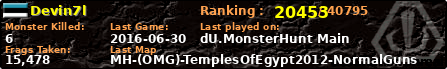 | Server | Map | LastGame | Score | Teamscore | Monsterleft | Deaths | Suicides | TKs | Distance | Playtime | |
