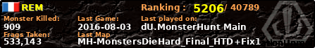 REM | | PlayerID: | 25956 | | Overall MHT: | 533,143 | | Overall Deaths: | 96 | | Overall Suicides: | 0 | | Overall TeamKills: | 1 | | Overall Distance traveled: | 110km | | Overall Time Spend on Server: | 00days 07h 12m 25s | | Maps Played: | 30 | | Firstgame: | 2016-07-03 22:02:24 | | LastGame: | 2016-08-03 22:23:50 | | Player Ranking Place: | 5206 | | Used Playernames: | REM