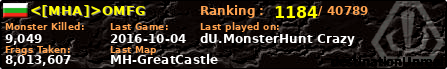 <[MHA]>OMFG | | PlayerID: | 26257 | | Overall MHT: | 8,013,607 | | Overall Deaths: | 296 | | Overall Suicides: | 78 | | Overall TeamKills: | 5 | | Overall Distance traveled: | 276km | | Overall Time Spend on Server: | 00days 23h 01m 02s | | Maps Played: | 86 | | Firstgame: | 2016-07-30 15:09:33 | | LastGame: | 2016-10-04 21:31:38 | | Player Ranking Place: | 1184 | | Used Playernames: | <[MHA]>OMFG