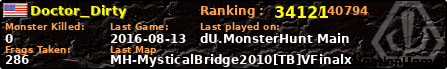 | Server | Map | LastGame | Score | Teamscore | Monsterleft | Deaths | Suicides | TKs | Distance | Playtime | |