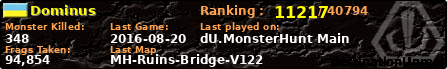 | Server | Map | LastGame | Score | Teamscore | Monsterleft | Deaths | Suicides | TKs | Distance | Playtime | |