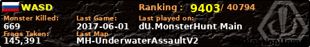 WASD | | PlayerID: | 26430 | | Overall MHT: | 145,391 | | Overall Deaths: | 149 | | Overall Suicides: | 0 | | Overall TeamKills: | 0 | | Overall Distance traveled: | 102km | | Overall Time Spend on Server: | 00days 06h 12m 56s | | Maps Played: | 18 | | Firstgame: | 2016-08-15 19:37:20 | | LastGame: | 2017-06-01 20:56:03 | | Player Ranking Place: | 9403 | | Used Playernames: | WASD