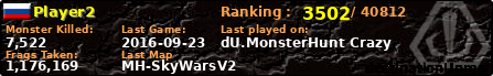| Server | Map | LastGame | Score | Teamscore | Monsterleft | Deaths | Suicides | TKs | Distance | Playtime | |
