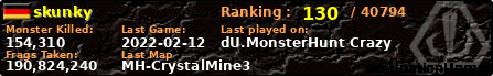 skunky | | PlayerID: | 27090 | | Overall MHT: | 190,824,240 | | Overall Deaths: | 1742 | | Overall Suicides: | 687 | | Overall TeamKills: | 0 | | Overall Distance traveled: | 2,043km | | Overall Time Spend on Server: | 07days 14h 45m 22s | | Maps Played: | 617 | | Firstgame: | 2016-10-16 21:20:24 | | LastGame: | 2022-02-12 12:44:06 | | Player Ranking Place: | 130 | | Used Playernames: | skunky