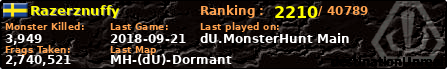 Razerznuffy | | PlayerID: | 27144 | | Overall MHT: | 2,740,521 | | Overall Deaths: | 225 | | Overall Suicides: | 4 | | Overall TeamKills: | 6 | | Overall Distance traveled: | 299km | | Overall Time Spend on Server: | 01days 02h 52m 54s | | Maps Played: | 87 | | Firstgame: | 2016-10-22 00:04:27 | | LastGame: | 2018-09-21 23:55:45 | | Player Ranking Place: | 2210 | | Used Playernames: | Razerznuffy